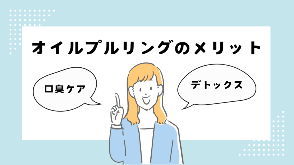 オイルプルリングによって、歯の表面がつるつるになり、口臭の原因となる細菌も除去できるため、歯の健康や口臭予防にもつながります。