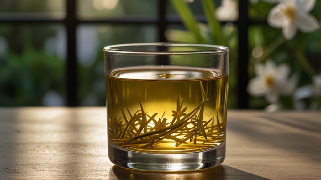 - 沸騰したお湯にジャスミンの花とレモングラスを入れ、3〜5分蒸らします。